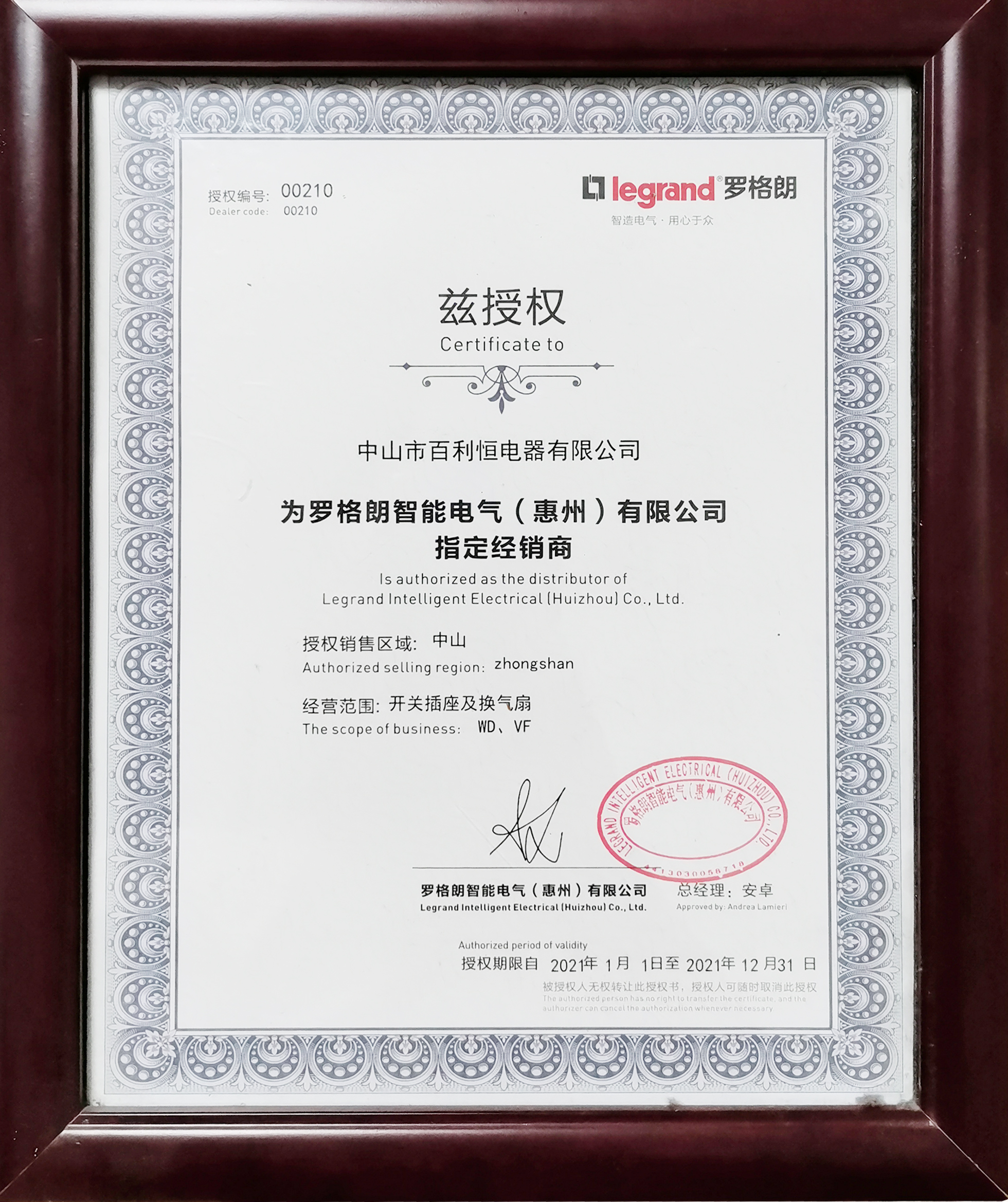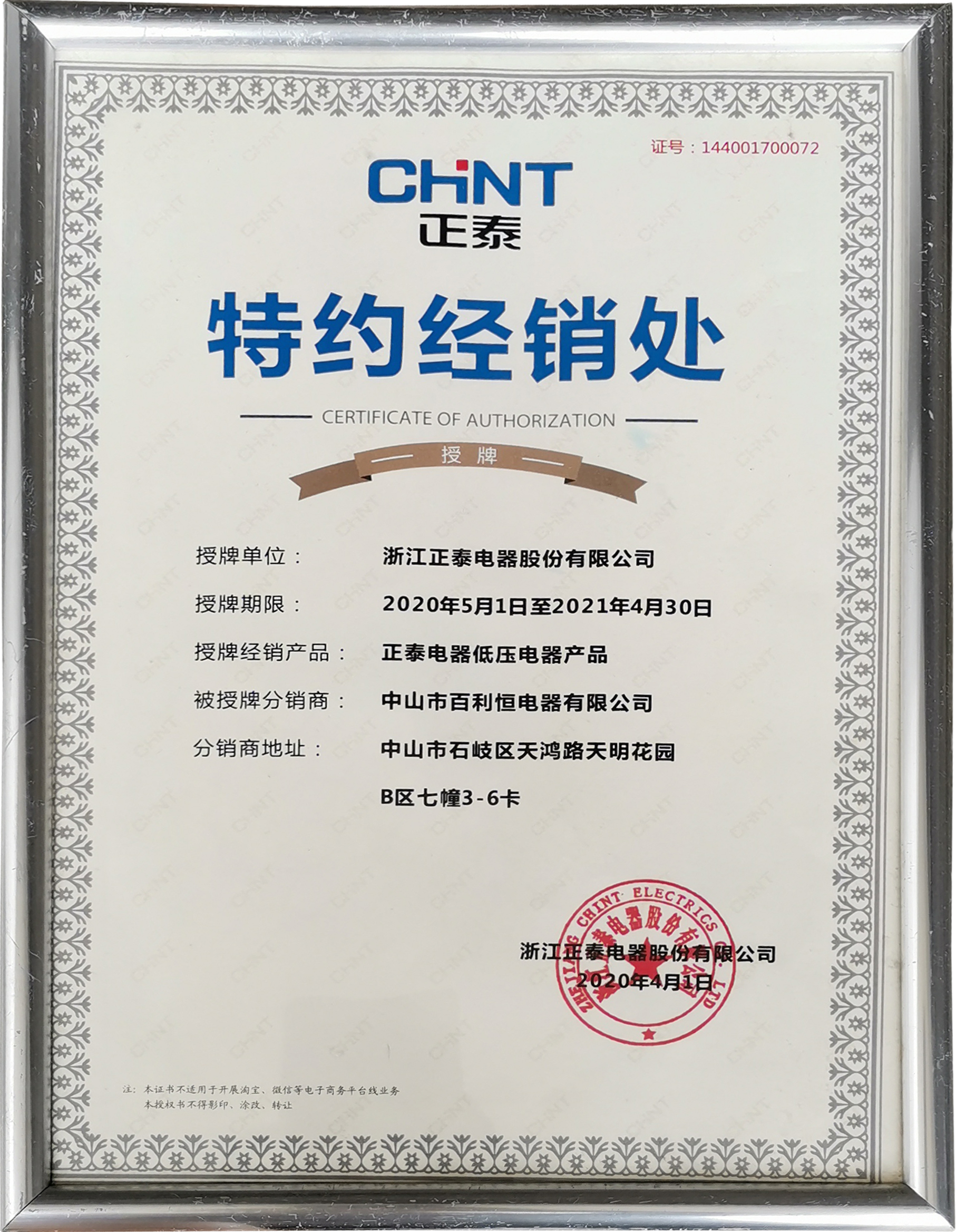 榮譽證書 ——