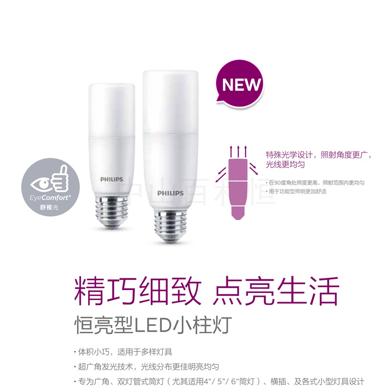 飛利浦   E27--5.5/7.5/9.5W 舒適光LED小柱燈(4000K)